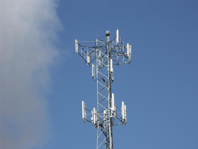 The top AMPS platform is being raised along with the panel antennas for AT&T