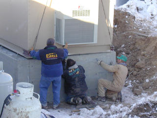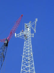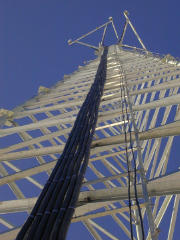 The tower is designed to hold 6 AMPS platforms at the 190, 180, 170, 160, 150, and 140 foot levels. Here the cables are being run for the top platform.